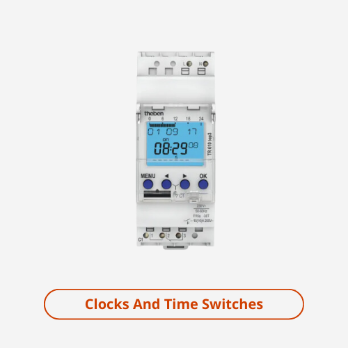 - Clocks and Time Switches: These versatile devices are suitable for both residential and public use. They can effectively control lighting in a variety of environments, including private homes, streets, shop windows, public buildings, car parks, ventilation systems, and swimming pool filtration pumps.