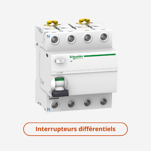 - Interrupteurs différentiels : L'interrupteur différentiel surveille le courant qui parcourt l’installation électrique et offre une protection renforcée contre les fuites de courant. Au sein de cette gamme, vous trouverez des interrupteurs adaptés aux environnements tertiaires ainsi que les modèles Resi9.
