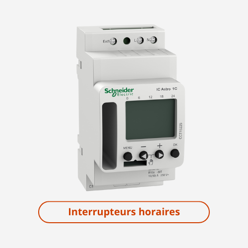 - Interrupteurs horaires : L'interrupteur horaire peut s'avérer très utile pour gérer efficacement votre éclairage et contrôler vos appareils électriques. Les interrupteurs horaires Schneider, Legrand et Theben permettent une programmation précise, optimisant ainsi la consommation énergétique.